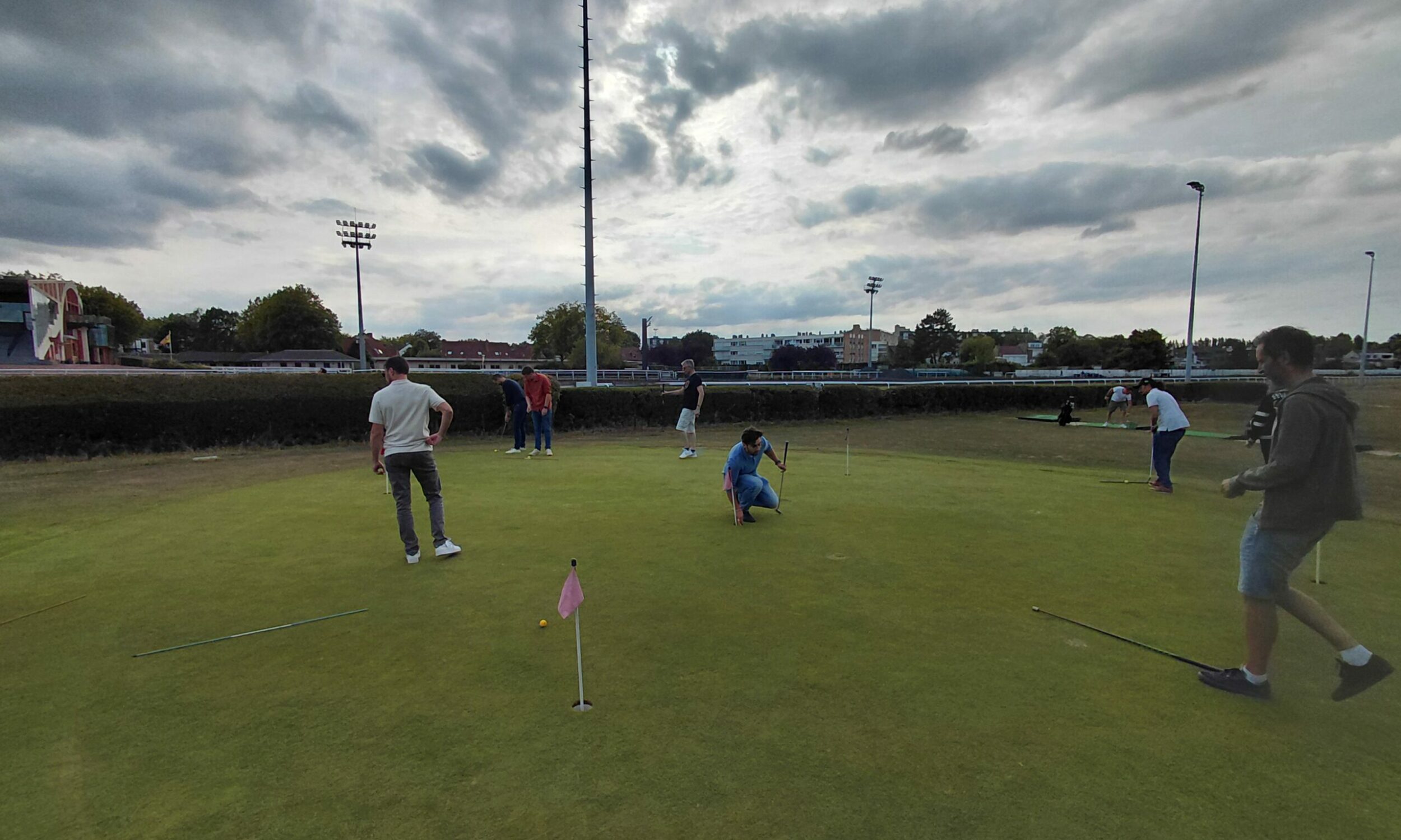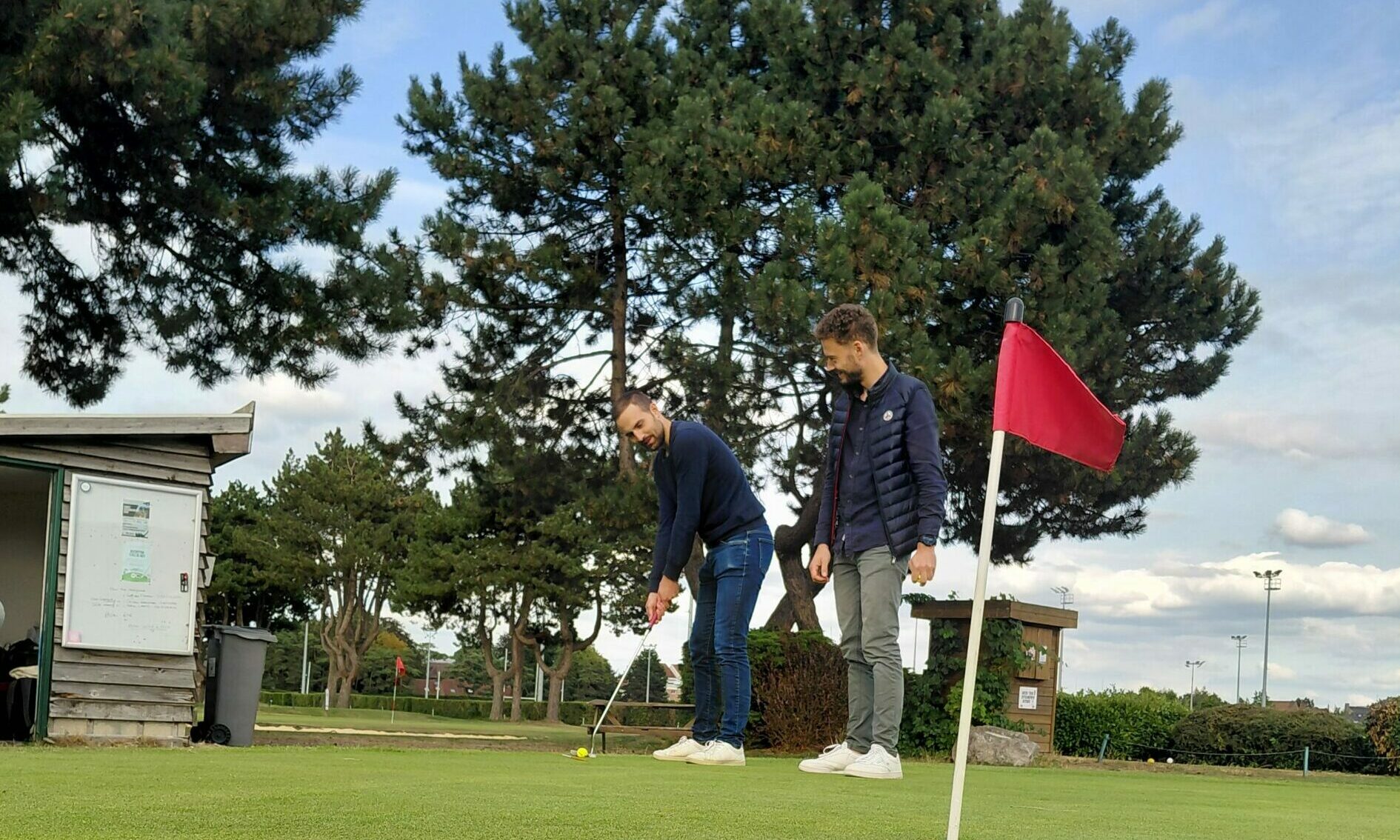 14 personnes ont pris part à cet événement du 22 aout 2025, où chaque participant a eu l’occasion de se tester au practice, de s’amuser autour du green et de s’essayer sur un trou dont le record est de 4 coups toutes initiations confondues.